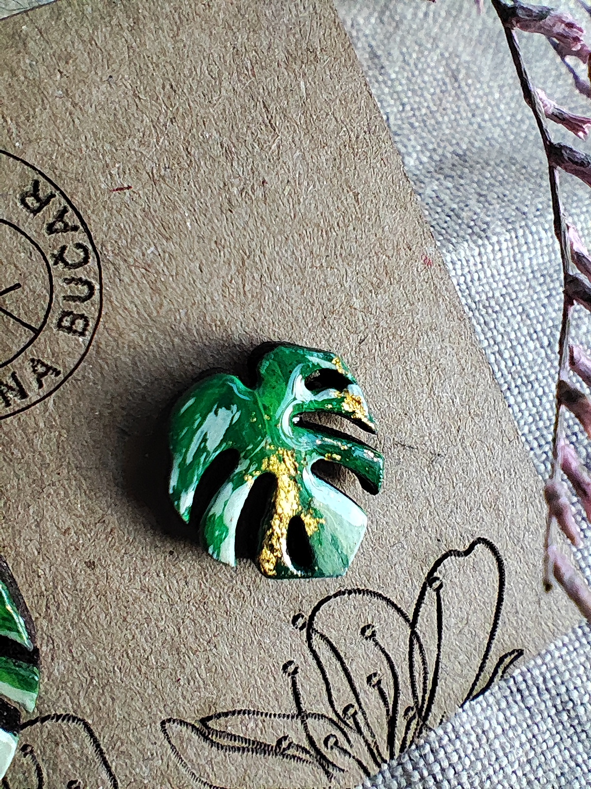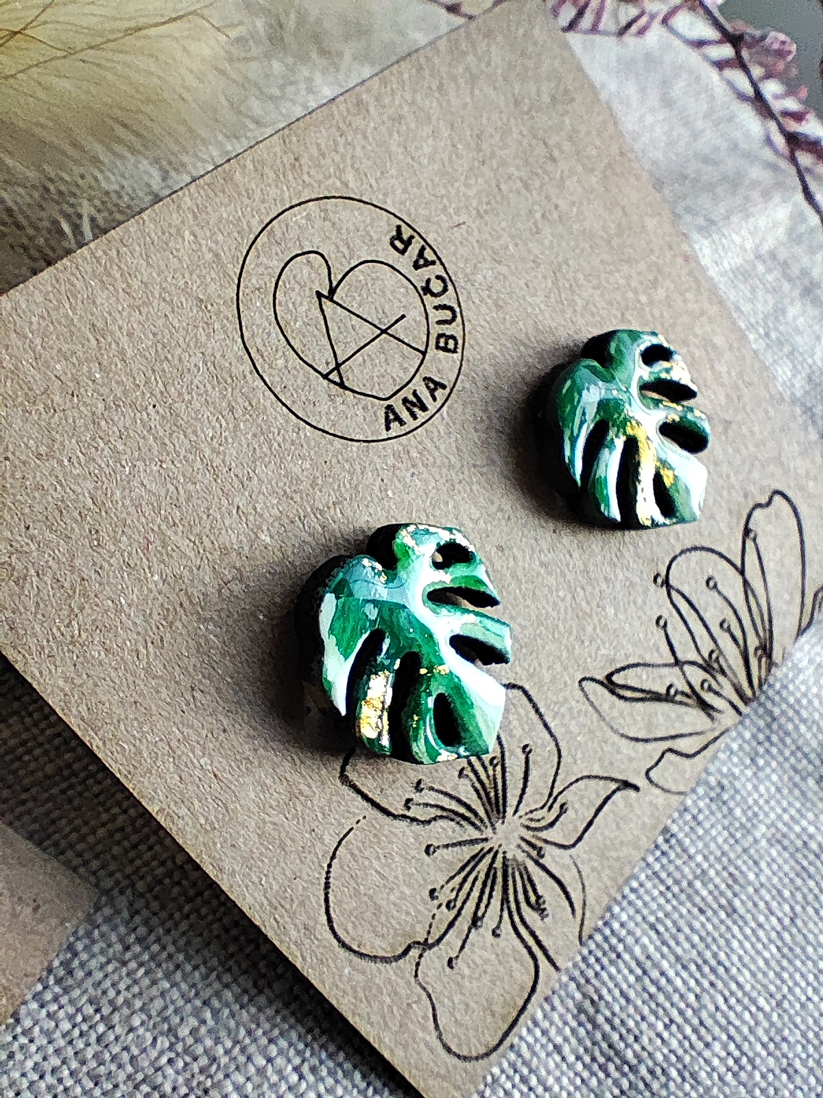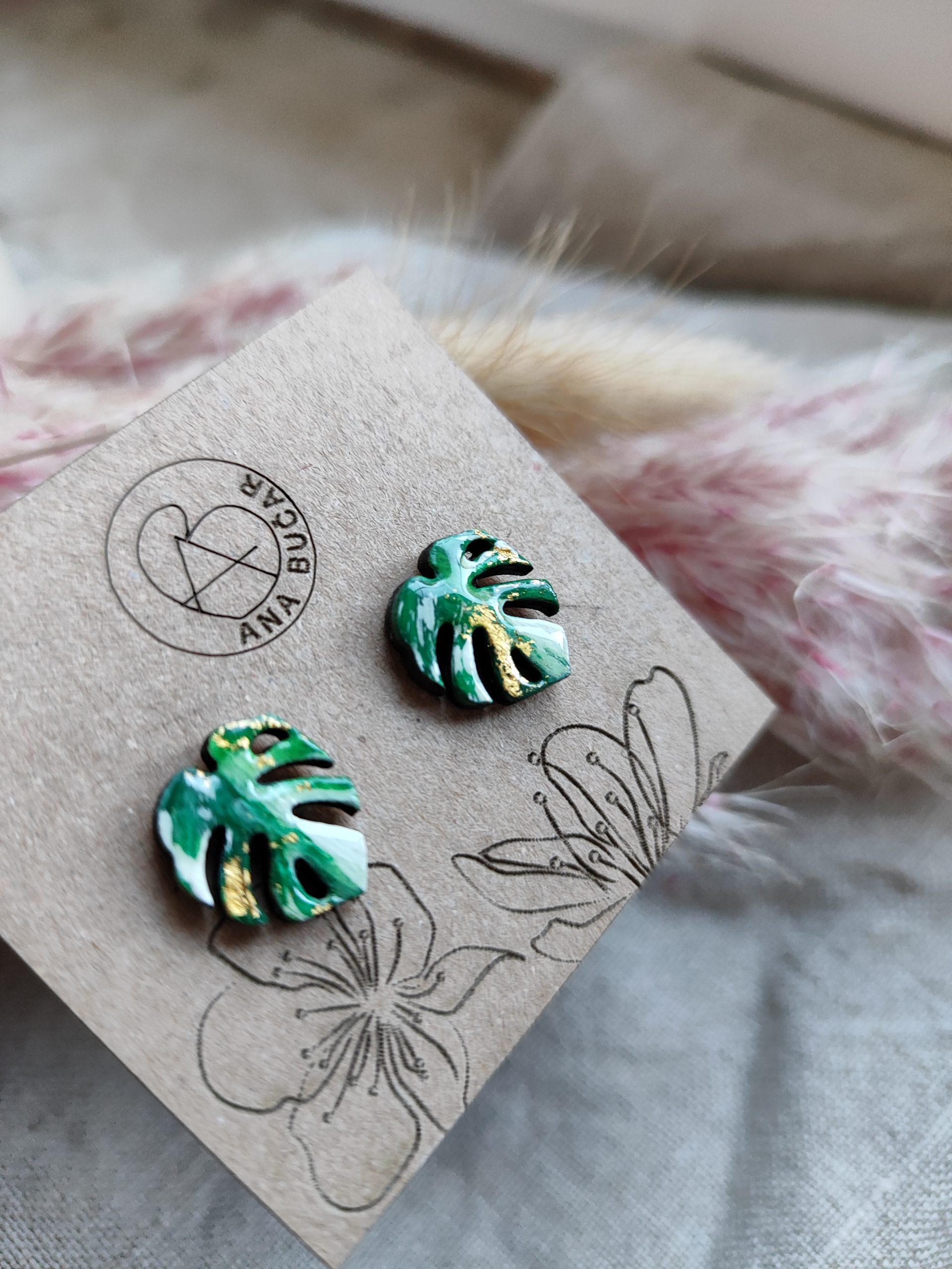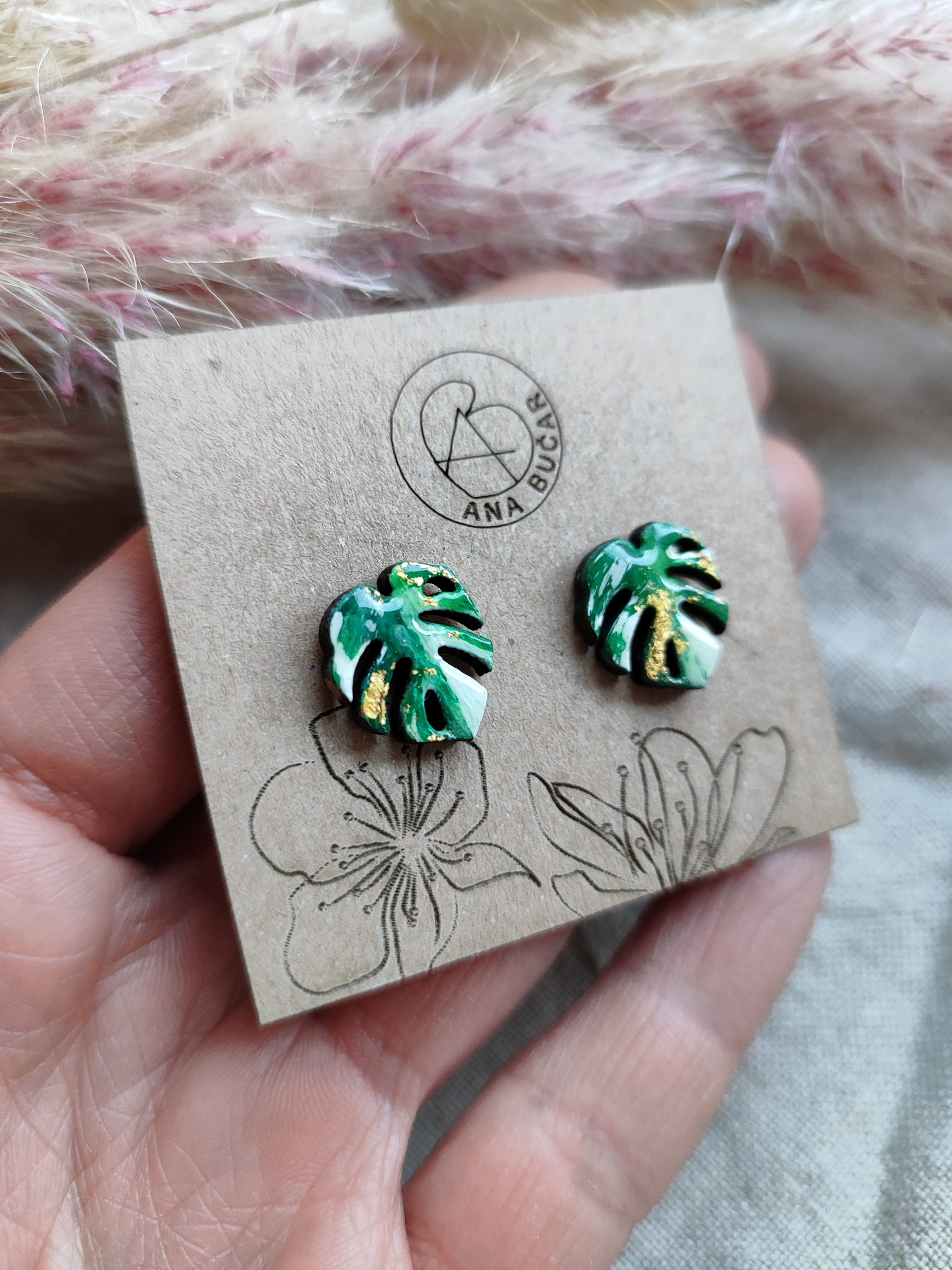 Uhančki so izdelani iz masivnega lesa ter pobarvani z akrilnimi barvami ter premazani s kristalno smolo, katera ustvari sijajni končni videz.